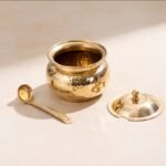 Preserve the purity and rich aroma of your ghee with our Handcrafted Brass Hammered Ghee Pot. Beautifully designed by skilled artisans, this premium pot is made from high-quality brass and showcases an elegant hammered finish that instantly elevates your kitchen décor. The solid brass body not only adds timeless charm but also helps maintain the freshness, flavor, and natural properties of your ghee.