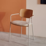 Its sleek minimalist design makes it an ideal choice for modern dining rooms, cafés, restaurants, offices, and kitchen spaces. The sturdy metal legs provide excellent stability, while the ergonomically designed wooden backrest ensures comfortable seating for everyday dining or extended gatherings.