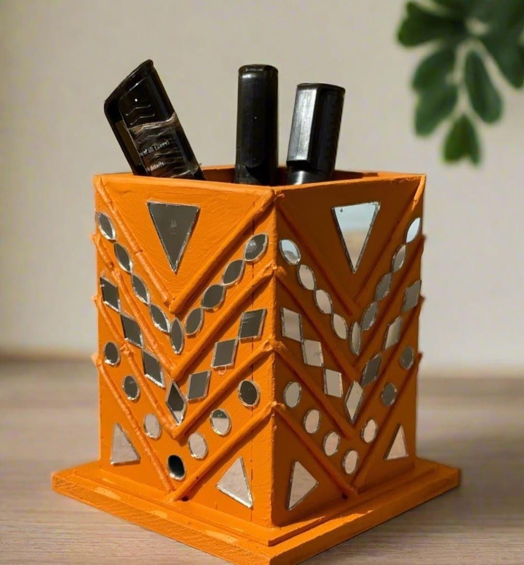 Made using natural clay, quality wood, and traditional mirror embellishments, this pen stand is completely eco-friendly and sustainable. The materials are carefully selected to ensure both durability and environmental responsibility.