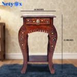 Antique Reddish Wooden Bedside Table with Drawer and Storage Shelf – Standard Size (21″ x 14″ x 12″) – Elegant Space-Saving Decor for Bedroom & Living Room